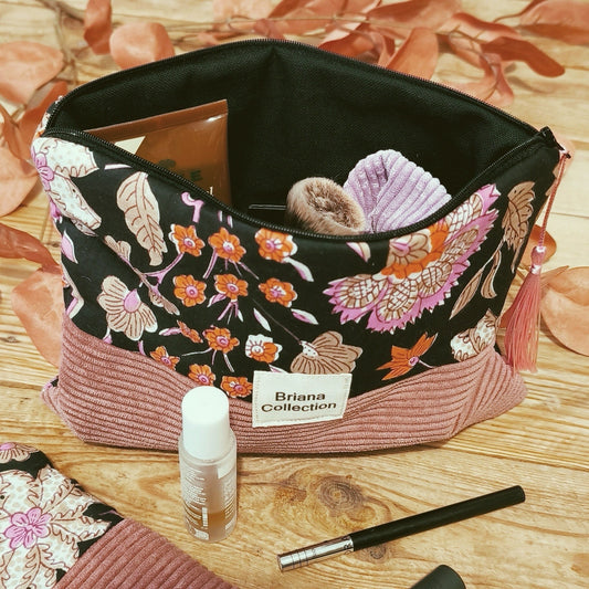 Pochette matelassé taille XL bi matière coton block Print / velours ROSIE
