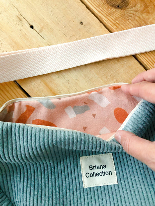 Sac bandoulière MOON réglable velours côtelé bleu ciel