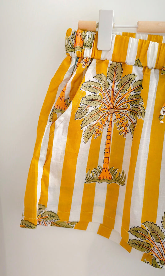 Short ZELIE rayures moutarde motifs palmiers taille S/M