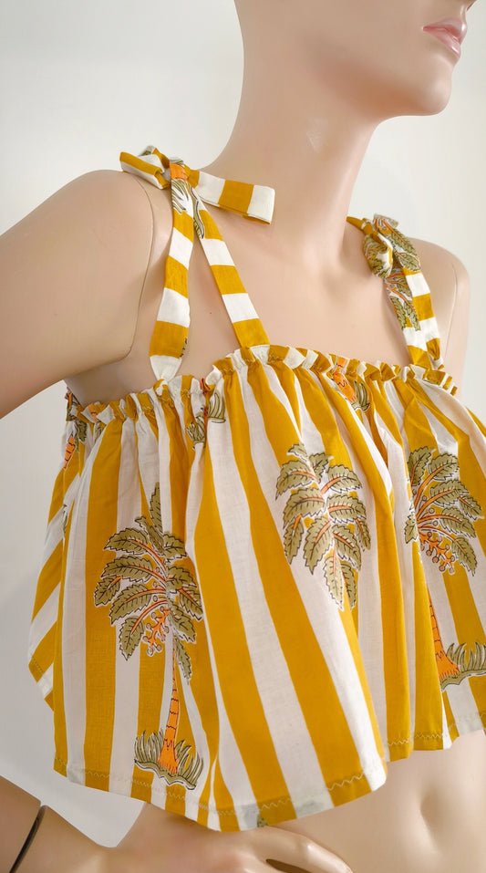 Top NAÏA rayures coloris moutarde « Palmiers »