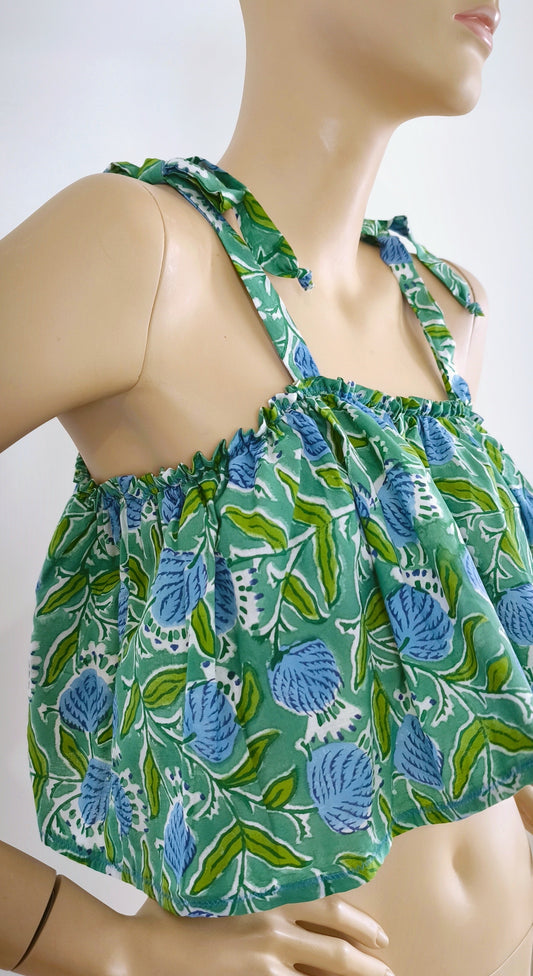 Le top NAÏA est un haut babydoll à l’allure libre et solaire. Son tissu en voile de coton indien imprimé à la main est léger, doux et agréable à porter même sous les fortes chaleurs.